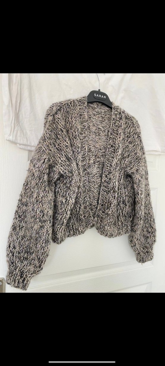 Gri renkli, uzun kollu ve bohem tarzda, bol kesim mini örgü kadın hırkasıdır. Günlük kullanıma uygundur.