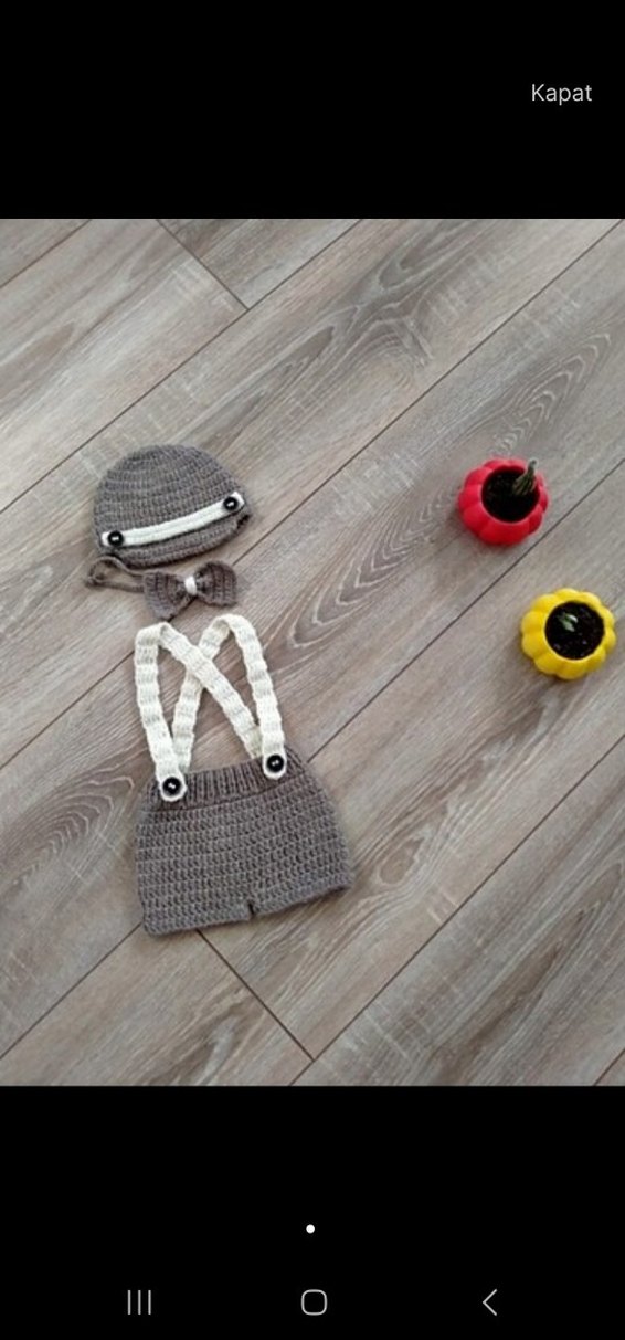 Gri Bohem Örgü Erkek Bebek Takımı bebek çekim kostümü