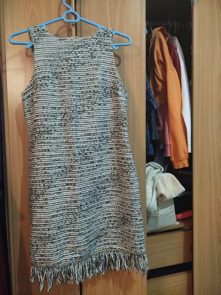 Gri renkli, örgü dokulu ve salaş bağlama desenli midi elbise. Kolsuz, yüksek yakalı ve vücuda oturan kesimiyle bohem tarzda, püsküllü etek ucu bulunur.
