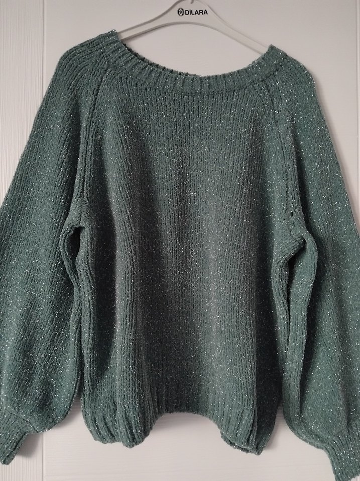 Turkuaz renkli, örgü kumaştan, bohem tarzda, salaş kesim uzun kollu kadın kazak. Bisiklet yaka ve düz deseniyle günlük kullanıma uygun rahat bir model. Simli iplikten yapilmıştir.✨