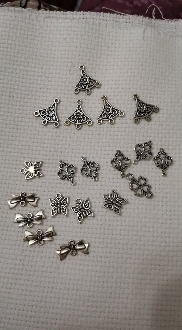 Gri renkte, boncuklu ve nakışlı detaylara sahip bohem tarzda kelebek, fiyonk ve çiçek motifli charm seti. Günlük kullanıma uygundur.