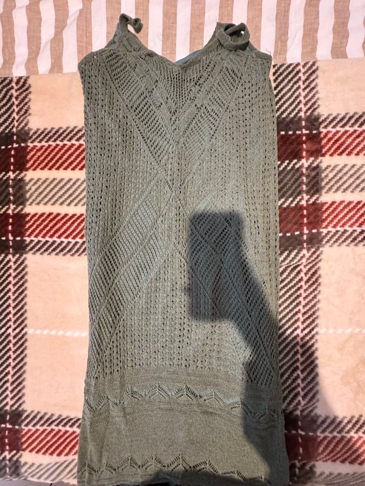Gri Bohem Tarz Uzun Örme Kolsuz Kadın Elbise