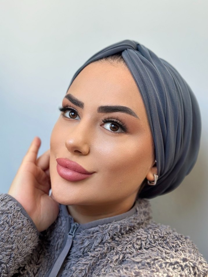 Yumuşak sentetik kumaştan üretilmiş, gri bohem tarzı kadın tesettür bone, sade ve zahmetsiz şıklık sunar.