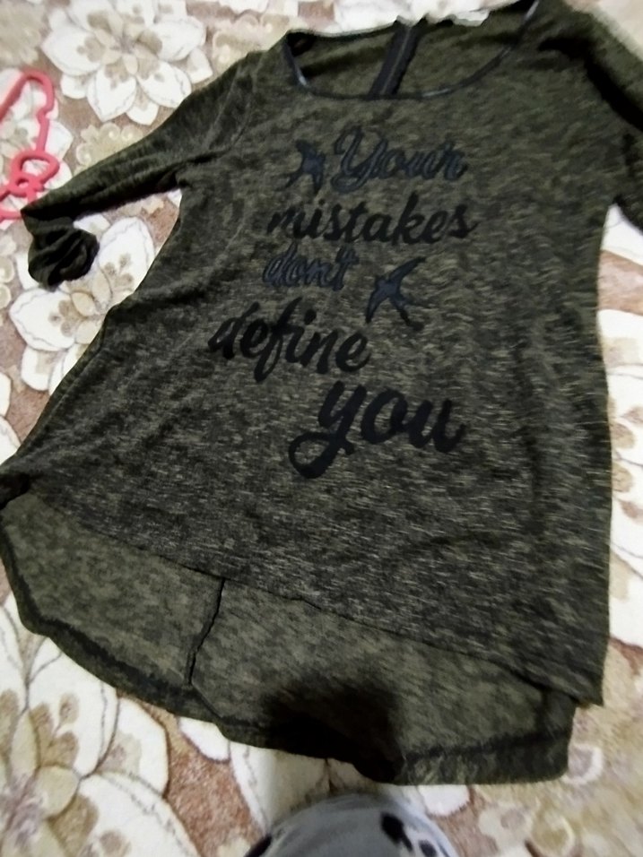 Gri bohem tarzda, uzun kollu, bol kesim hamile tişörtü. Yumuşak sentetik kumaştan, baskılı ve örme detaylı. Günlük kullanım için uygundur.