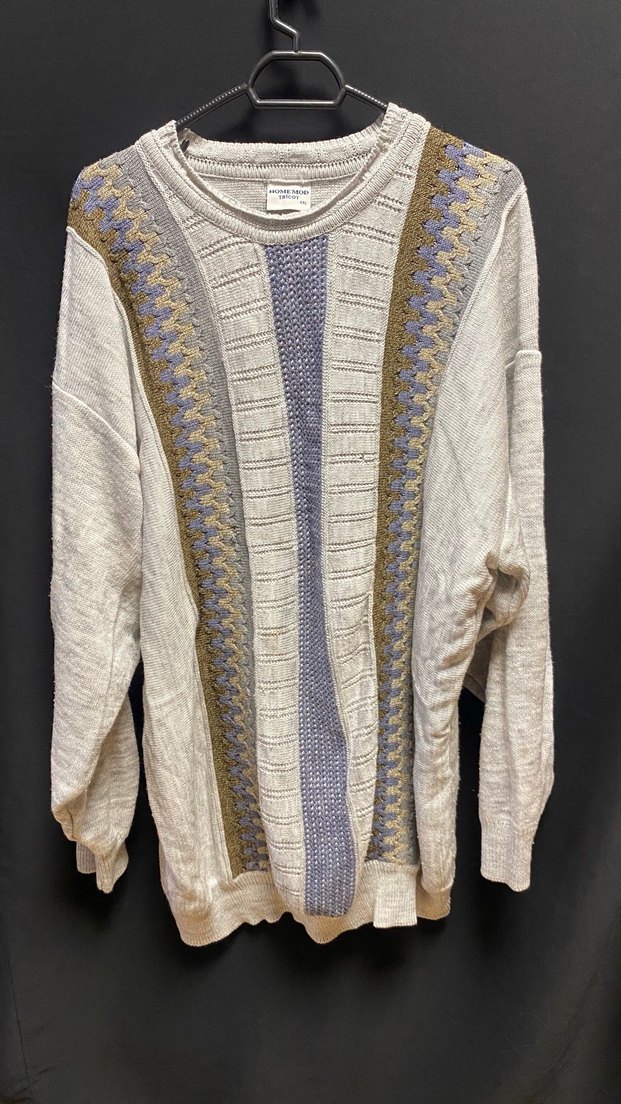 Gri renkli, uzun kollu ve yuvarlak yakalı örgü kazak. Bohem tarzda, gevşek kesimli ve uzun boylu, çizgili ve günlük kullanıma uygun.