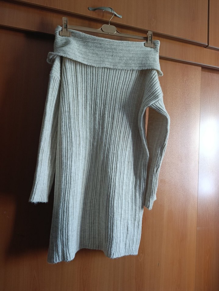 Gri renkli, bohem tarzda, yüksek katlamalı yakaya ve uzun kollara sahip, rahat ve triko kumaştan yapılmış dar kesim elbisedir. bir body ile tunik olarakta kullanılabilir s beden olarak girdim ama esnek kumaşı olduğu için her bedene olur sadece omuz kısmı biraz dar durur s m L bedenlere olur