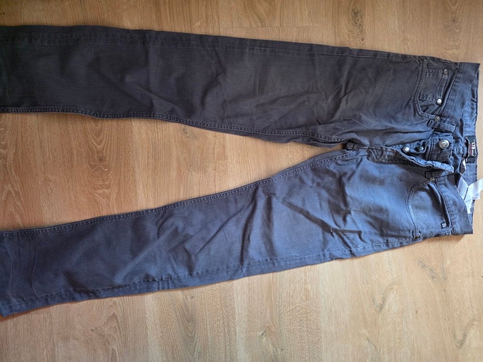 Gri renkli, bol kesim ve normal boyda denim erkek pantolon. Bel kemeri detaylı, günlük kullanıma uygun rahat bir model.