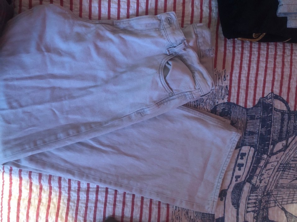 Gri denimden yapılmış, bol kesim bedeni 36 37 gorundugu gibi lekesi yoktur 1 kere giydim 900 e aldim indirim isteyebilirsiniz