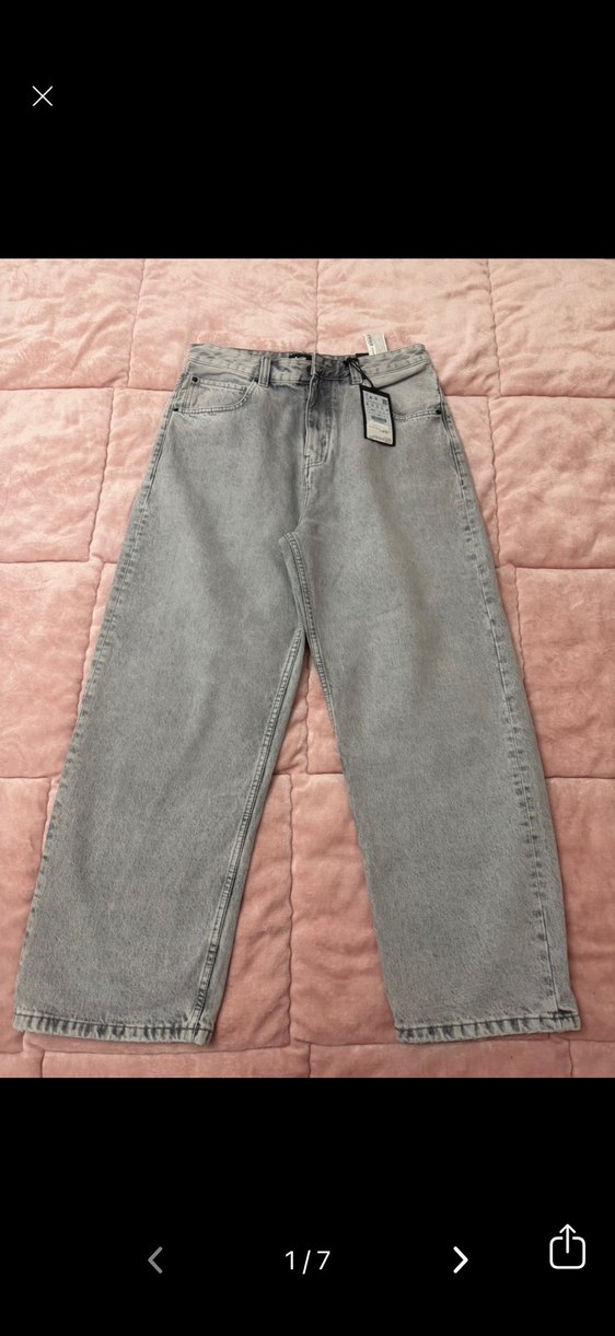 Pull bear marka hiç giyilmedi etiketlidir Gri renkte, bol kesim ve erkek denim pantolon. Günlük kullanım için rahat ve şık bir sokak stili sunar.