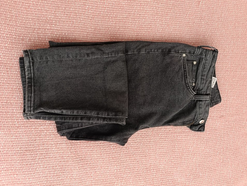 Gri siyah bol kesim kadın denim jean, fermuarlı detaylı, midi boy ve gündelik sokak stili için uygun. hiç giyilmedi yanlış beden aldığım için satıyorum 1300 almıştım yeni ürün