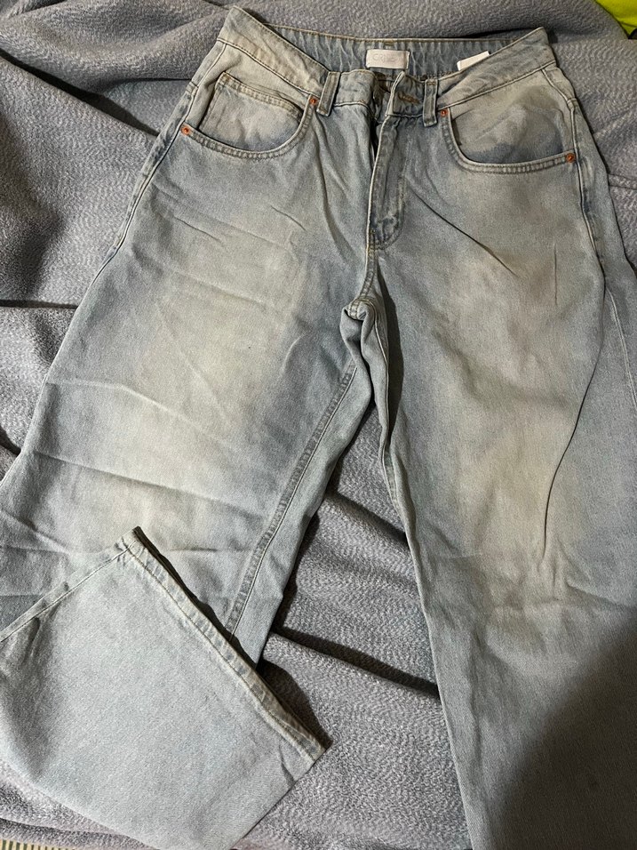 Gri renkte, bol kesim ve normal boyda kadın denim pantolon. Desensiz, sokak stiliyle uyumlu, gündelik kullanıma uygun rahat bir model.