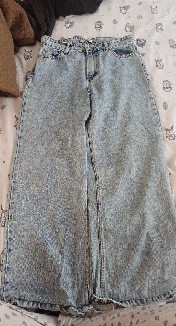 Gri renkte, bol kesim uzun kadın denim pantolon. Fermuarlı detaylarıyla gündelik sokak stiline uygun, rahat ve desensiz.Ürünün sadece etiketi çıkmıştır.Yeni ve kusursuzdur.