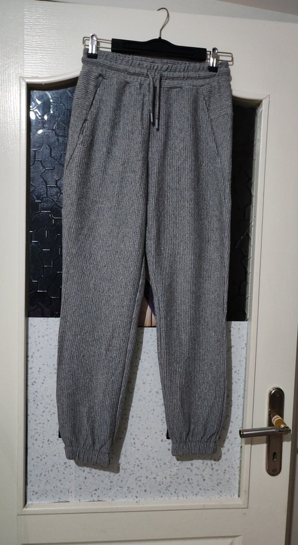 Gri renkte, kemerli ve bol kesim kadın eşofman altı. Normal boyda, yumuşak sentetik kumaştan üretilmiştir. Rahat günlük kullanım için uygundur. Uzunluk 96cm ağ ölçüsü 35 cm bel ölçüsü 34 cm lastikli hafif esnek kumasa sahip
