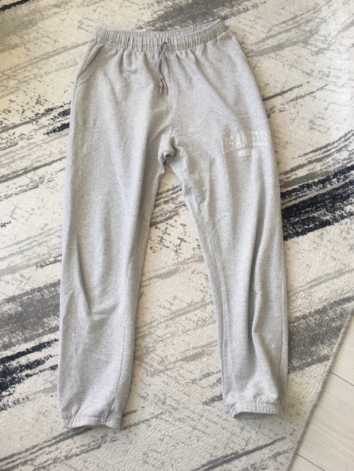 Bol kesim, gri renkli kadın eşofman altı, yumuşak keten kumaştan üretilmiştir. Uzun boy ve zahmetsiz şıklık sunar, günlük kullanım için uygundur. ♀️