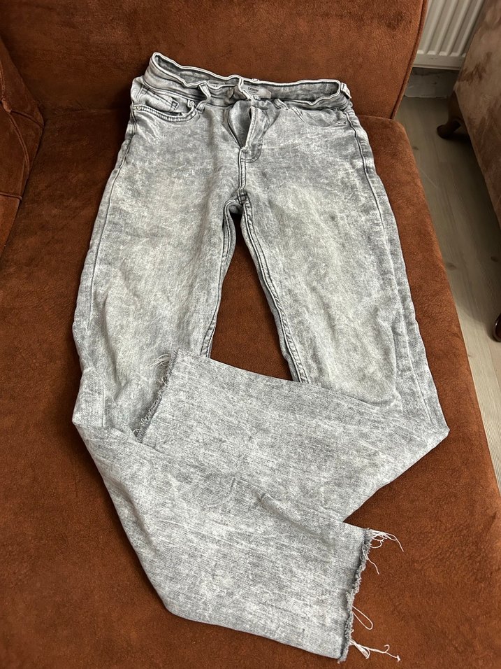 Gri kot kumaştan, bol kesim ve midi boyda kadın pantolon. Desensiz yapısı günlük kullanıma uygun rahat ve şık bir görünüm sunar.