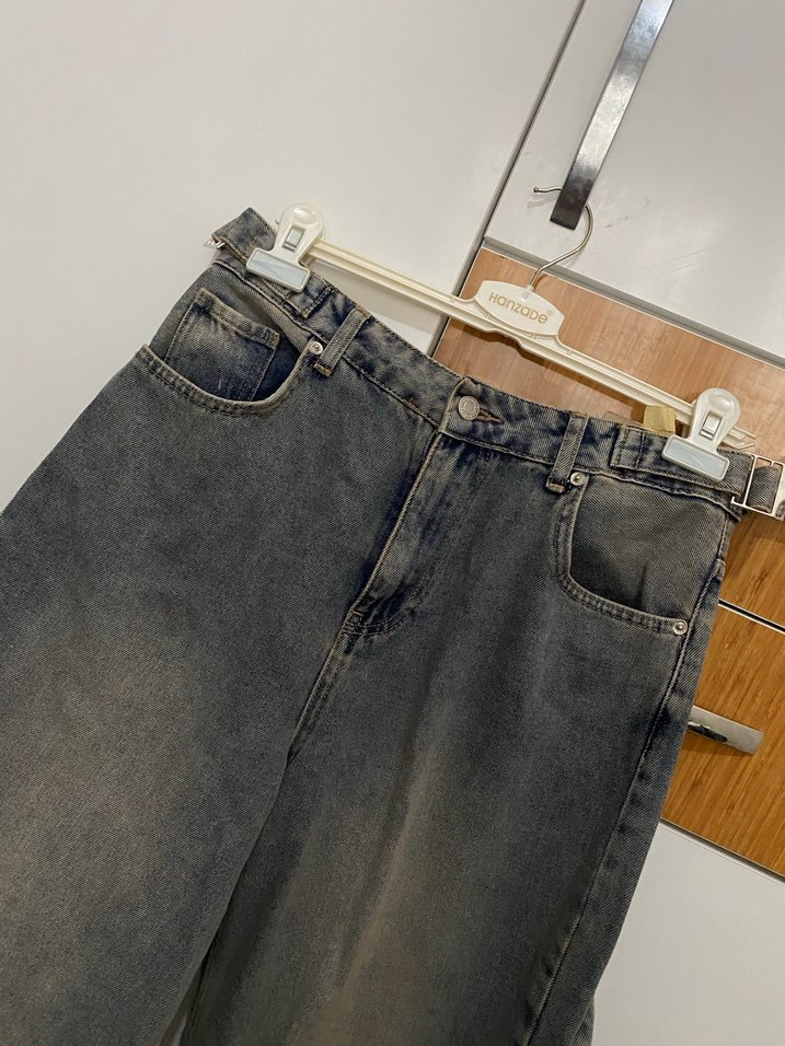 Gri renkte, bol kesim ve normal midi boyda kadın denim pantolon. Tokalı detayı ve gündelik sokak stiline uygun tasarımıyla her gün kullanılabilir.