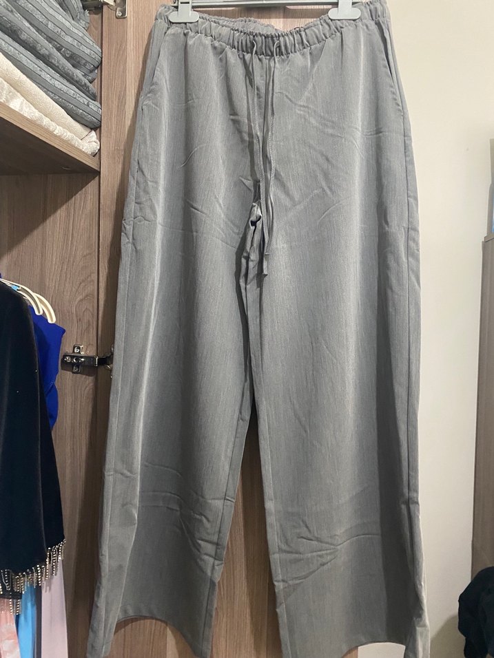 Gri Bol Kesim Kadın Pantolon