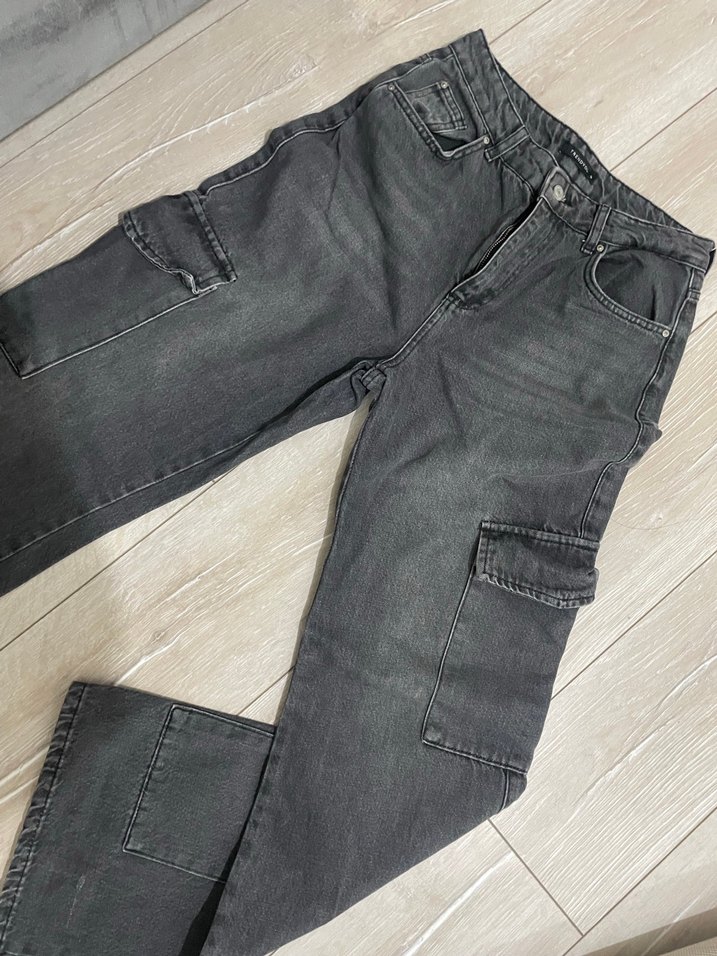 antrasit jean bol kesim paça boyu uzun alt paçalarında da cep var defo yok iyi durumda