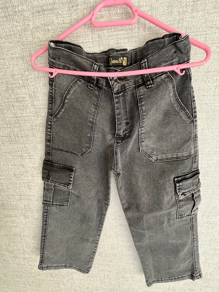 Beli lastikli ayarlanabilir gri kot kumaştan, bol kesim kot pantolon. Rahat sokak stili için uygun.9 yaş yazıyor ama 7 8 yaş için daha uygundur