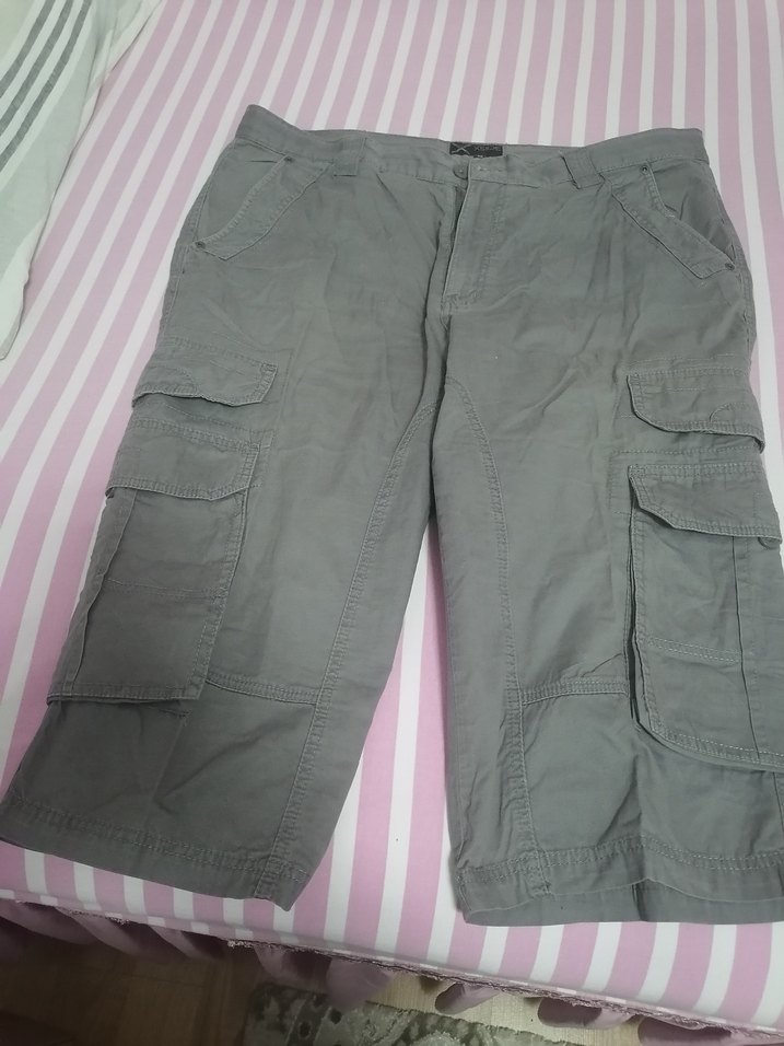 Yumuşak pamuk kumaştan yapılmış, kemerli ve bol kesim gri erkek kapri pantolon. Sokak stiline uygun, dış mekan kullanımı için ideal.