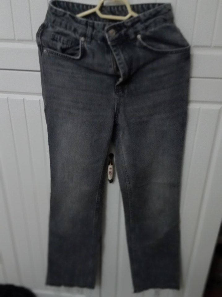 Gri renkte, bol kesim ve tokalı detaylı midi uzunlukta kot pantolon. Günlük kullanım için rahat ve desen içermeyen tasarım.