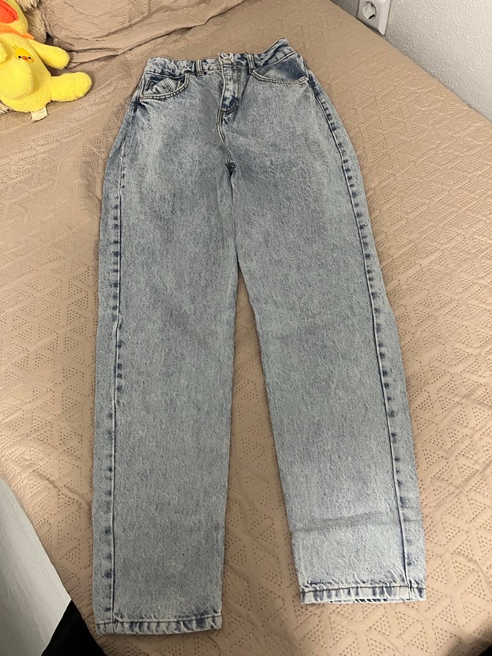 Gri renkli, bol kesim ve kot pantolon, gündelik ve şık sokak stili için uygundur. Desensiz ve rahat bir tasarıma sahiptir.