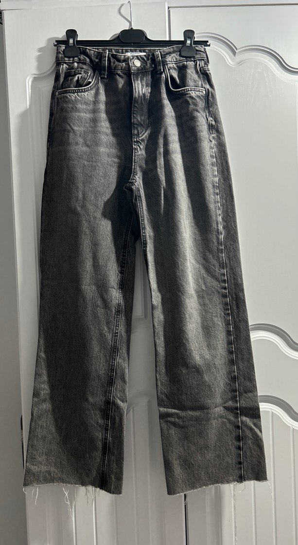 Gri Bol Kesim Midi Boy Kadın Kot Pantolon