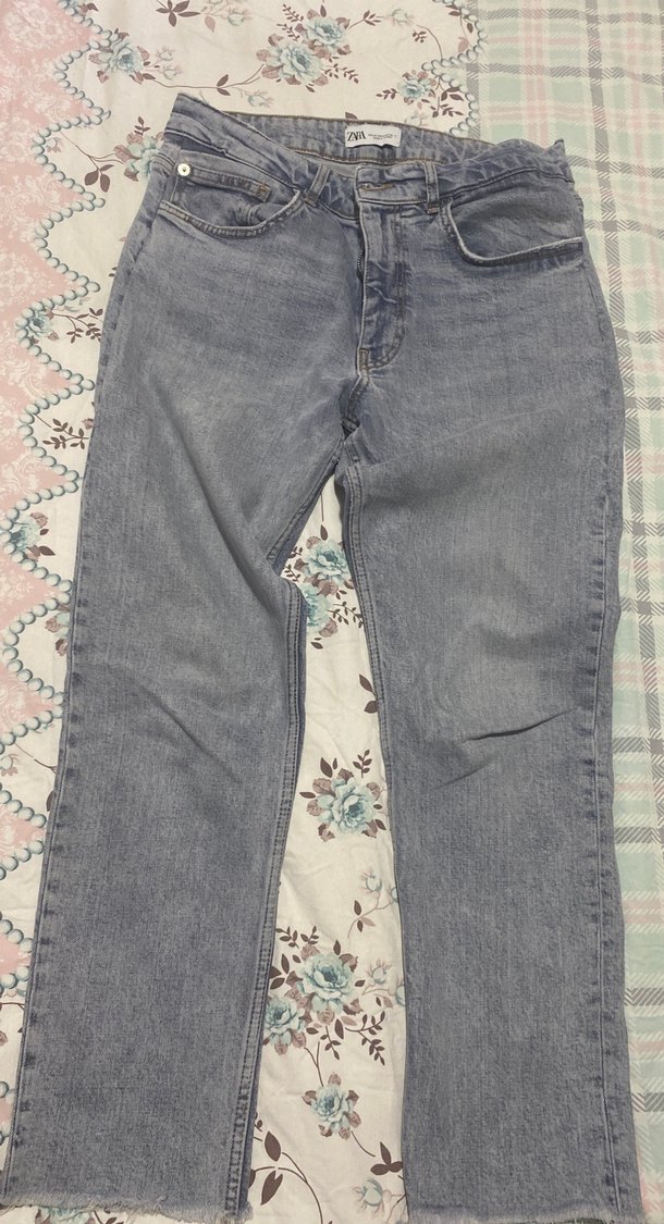 Gri renkte, bol kesim ve midi boy kot pantolon, düğme detaylarıyla günlük rahat ve trend bir stil sunar.