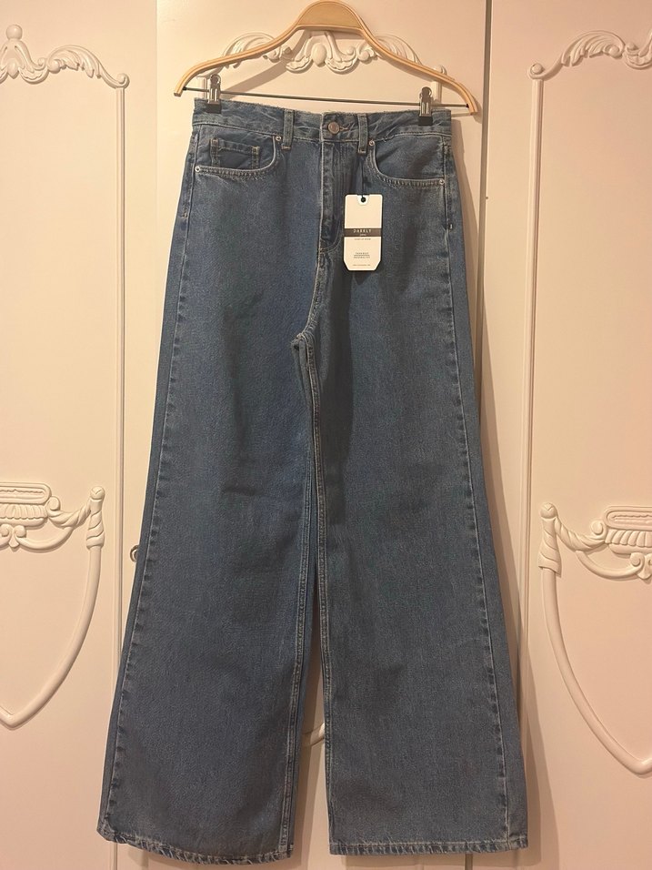 Gri renkte, bol kesim ve midi boy kot pantolon. Düz ve rahat yapısıyla günlük sokak stiline uygun.