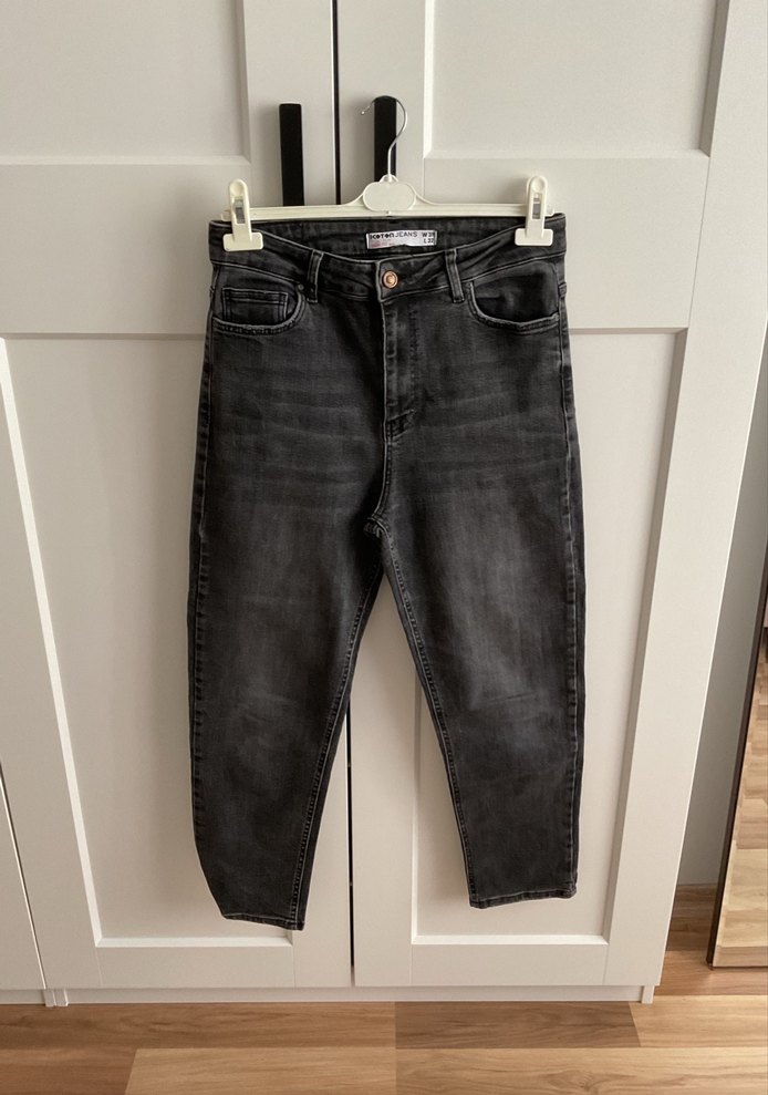 Gri renkte, bol kesim ve midi boyda kadın denim jean. Tokalı detaylı, desensiz ve günlük kullanıma uygun rahat bir modeldir.