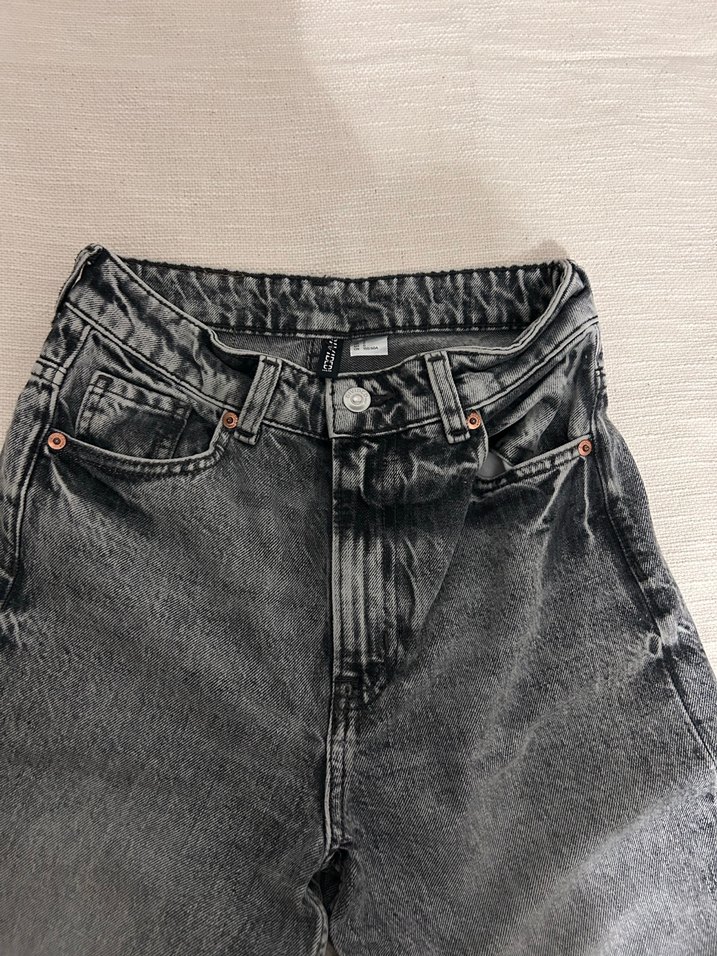 Gri renkte, bol kesim ve kemer tokalı midi uzunlukta kadın denim jean. Sokak stili için uygun, günlük kullanıma ideal.