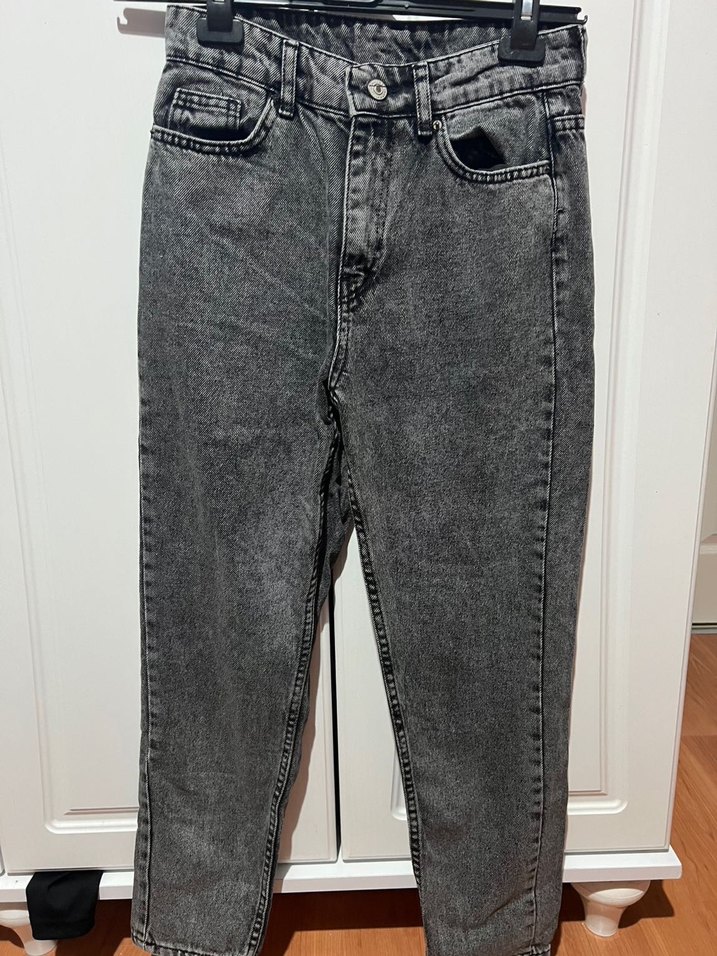 Bol kesim, midi boy gri denim kadın jean. Günlük kullanıma uygun, zahmetsiz şıklık sunar. Casual sokak stiline uygundur.
