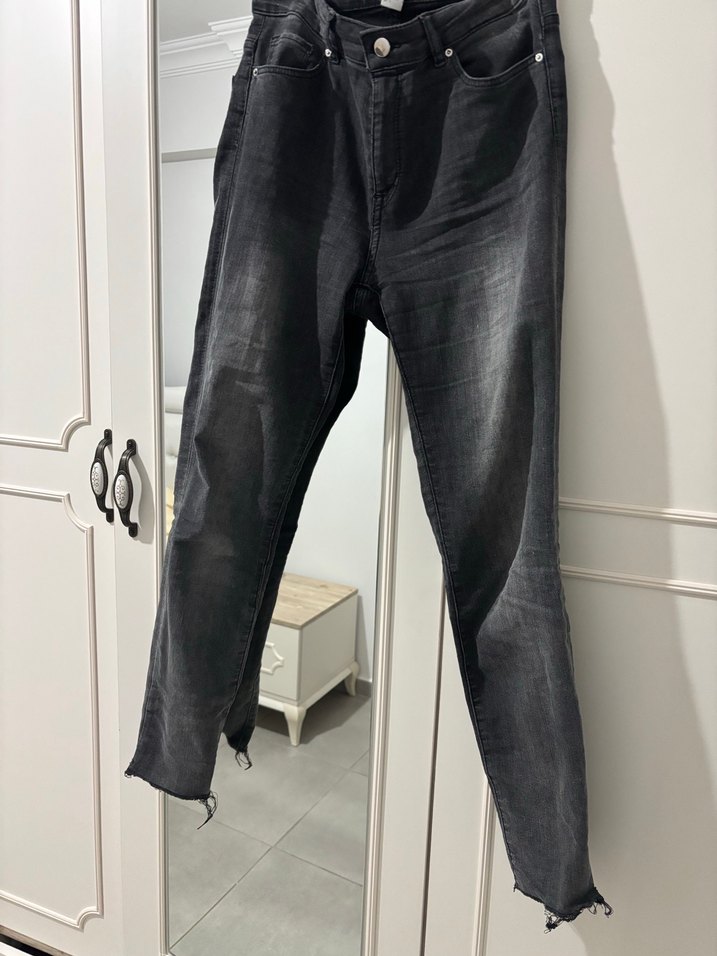 Gri renkte, bol kesim midi uzunluğunda, kemerli kadın denim jean. Sokak stiline uygun, desensiz ve günlük kullanıma uygun rahat bir model. H&M orijinal mağazasından alınmış makul üründür herhangi bir kusuru yoktur 36 beden rengi antrasit taşlama detayları var paça tadilatı görmemiş skinny pantolon hafif esnek kumaş