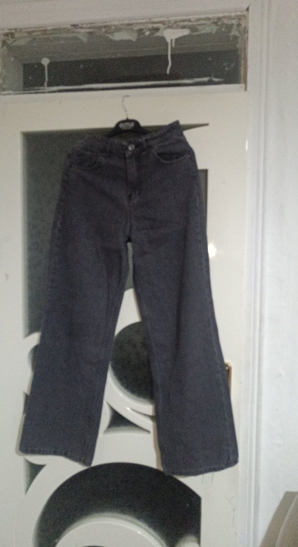 Gri renkli, bol kesim midi denim kadın pantolon, kemerli bel detayıyla gündelik sokak stili için uygundur. the original ürünüdür