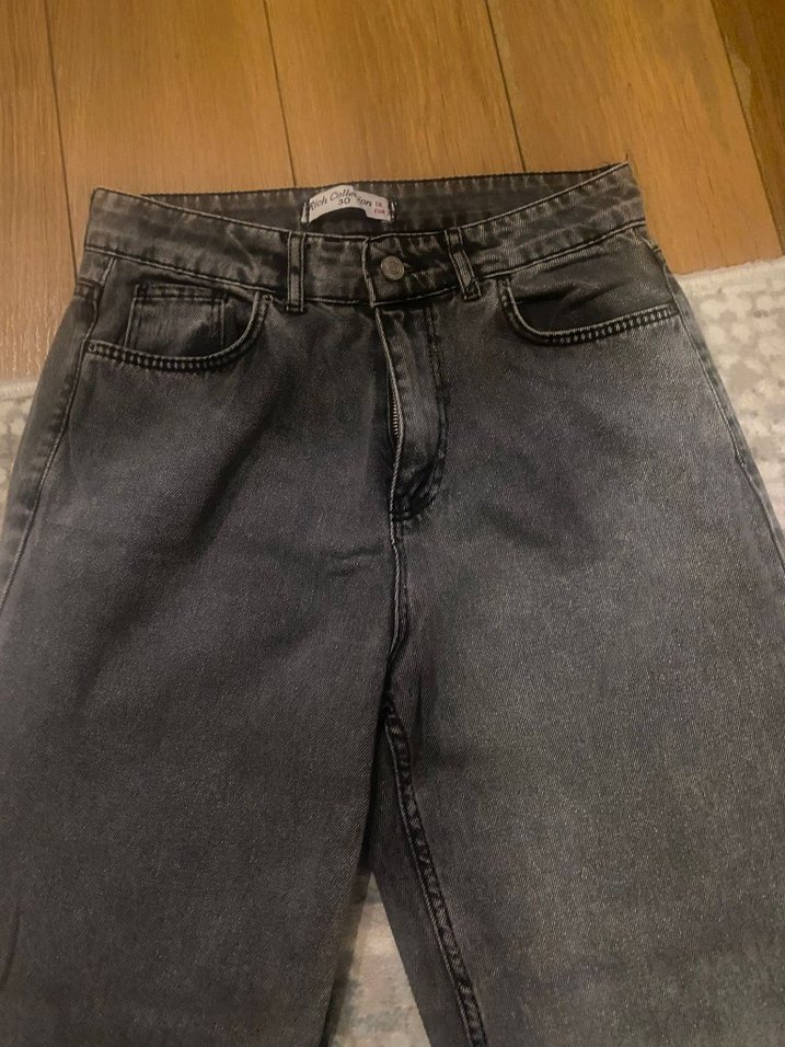 Gri renkli, bol kesim ve midi boyda denim kadın jean, rahat ve şık bir görünüm sunar.