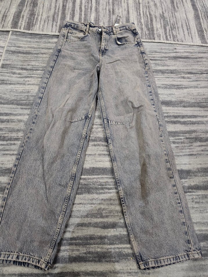 Gri renkli denim kumaştan üretilmiş, bol kesim ve midi boyda, günlük sokak modasına uygun, zahmetsiz şıklık sunan kadın kot pantolon.
