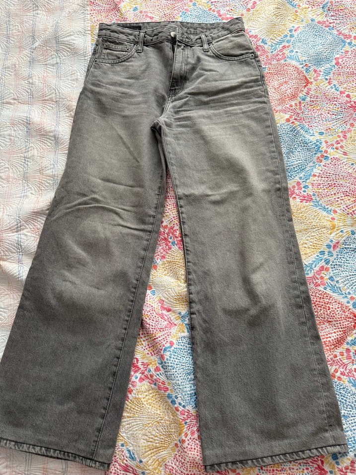 Gri renkte, bol kesim ve midi boy kot pantolon. Günlük kullanım için rahat ve şık, sokak stiline uygun tasarım. Beden dar oldugu için bi kaç kez giyildi. 1 kere yıkandı sadece