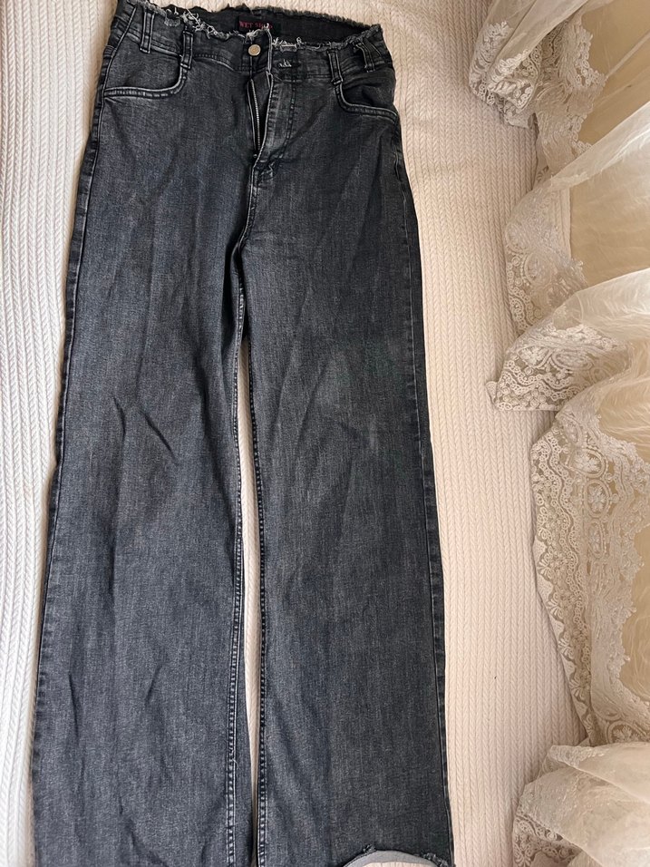Gri renkli, bol kesim ve midi boy kot pantolon, rahat ve şık bir sokak stili sunar. Günlük kullanım için uygundur.