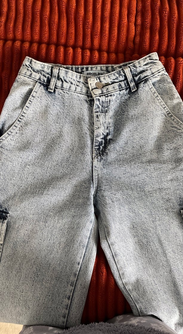 Gri renk, bol kesim, kemerli bel, normal uzunlukta midi kot pantolon. Sokak modasına uygun, günlük kullanıma ideal 34-36 beden için uygundur beli daraltmak için dikişi bulunmaktadır.