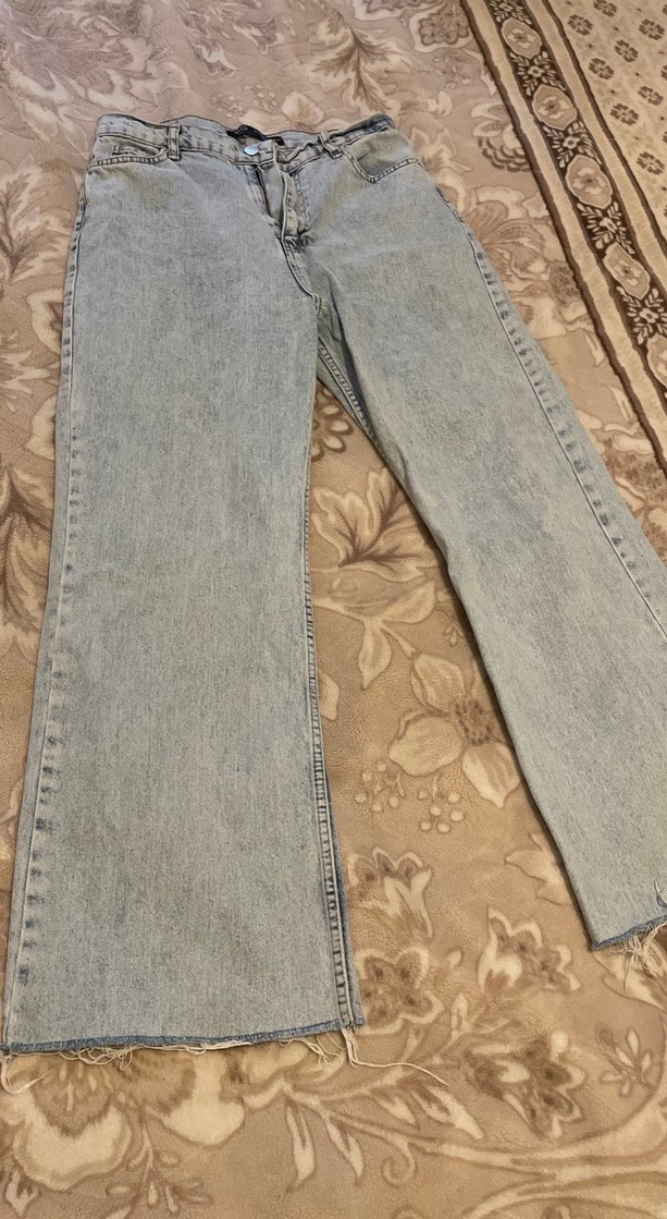 Bu kadın kot pantolonlar, yumuşak kot kumaşından yapılmış bol kesim ve midi boydadır. Gri renkte, desensiz tasarımı günlük sokak modasına uygundur. Zahmetsiz şıklık sunar.