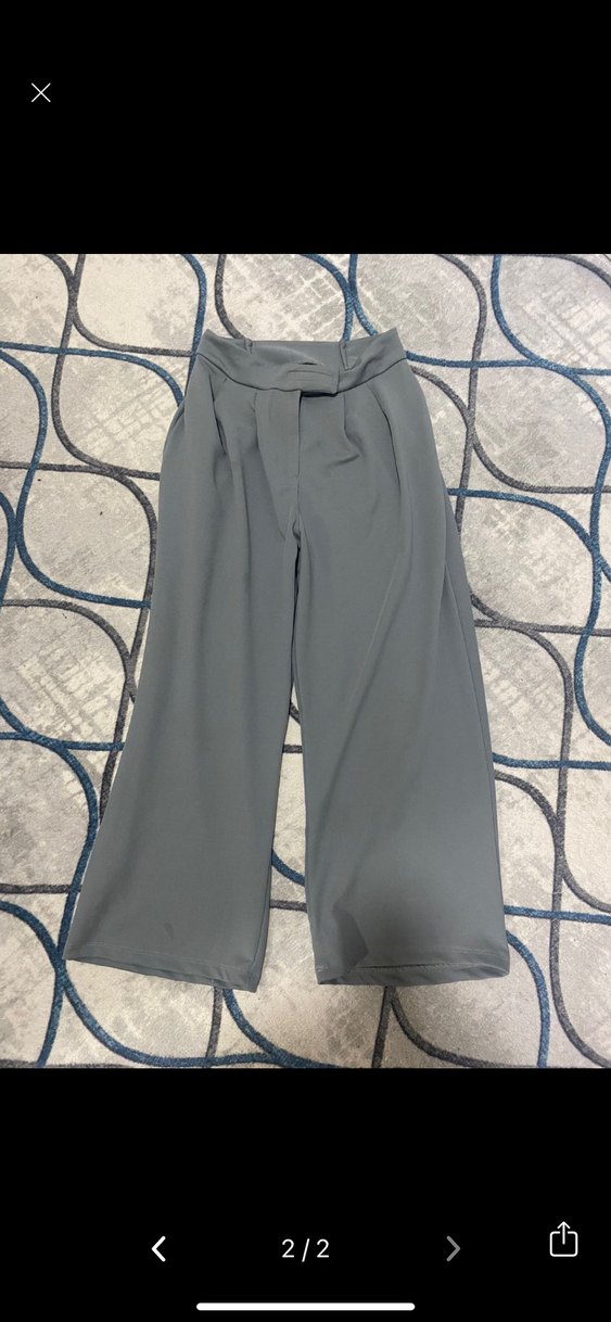 Gri Bol Kesim Midi Kumaş Pantolon