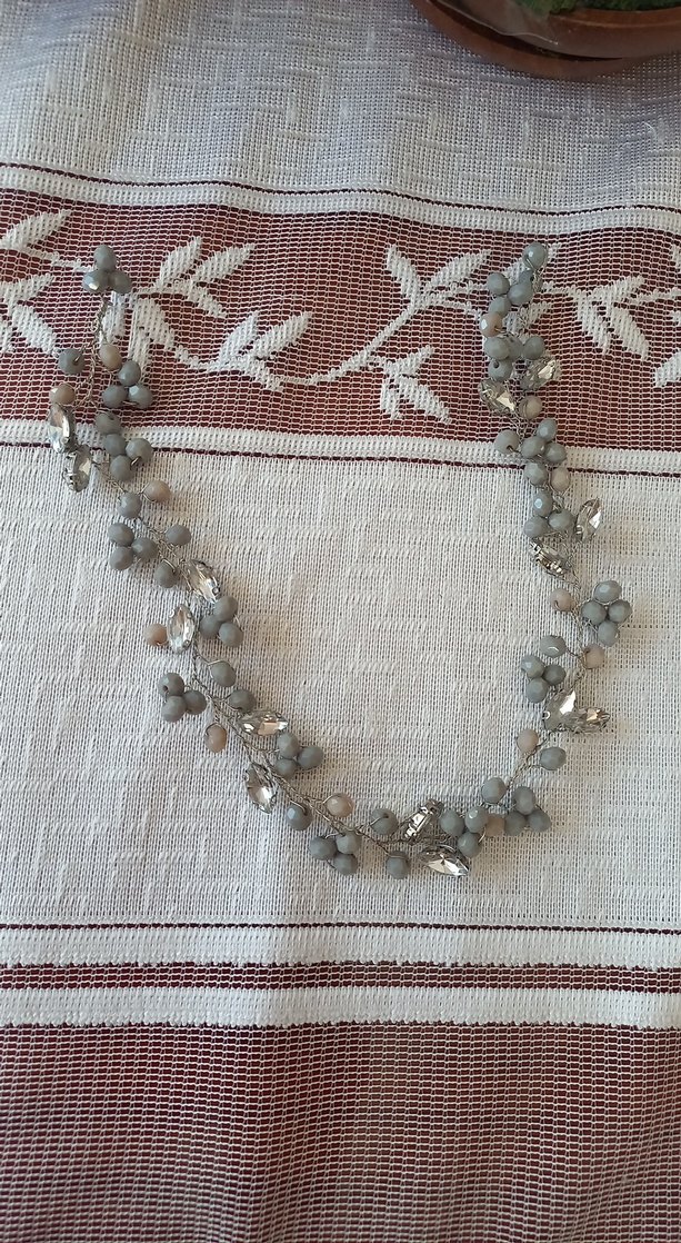 Boncuk detaylı, gri renkli örgü saç aksesuarı, vintage bohem ve retro hippie tarzını yansıtır.