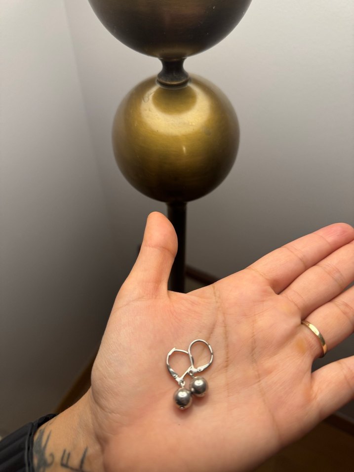 Gri renkte, boncuk detaylı midi uzunlukta kadın küpeleri. Minimalist ve klasik normcore tarzıyla romantik akşamlar için uygun.
