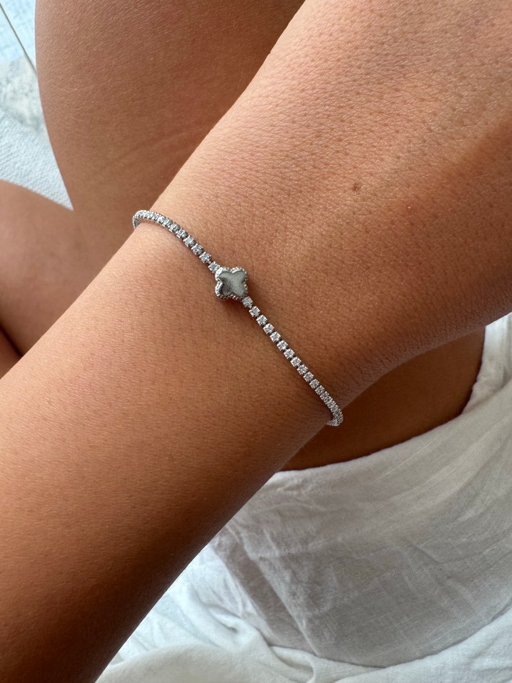 Gri boncuk detayları ve yılan desenli ince minimalist bileklik, romantik akşamlar için bohem tarzda şık bir seçim.