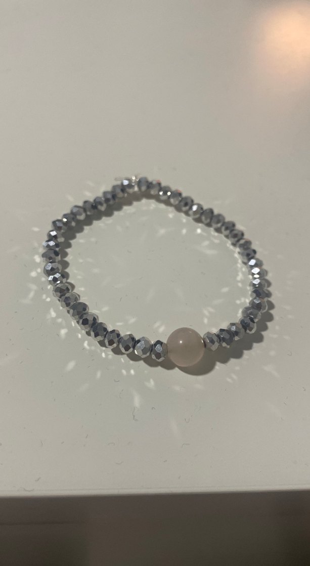 Gri kesme boncuklar ve tek düz yuvarlak boncuktan oluşan minimalist kadın bileklik, romantik akşamlar için uygun. ✨