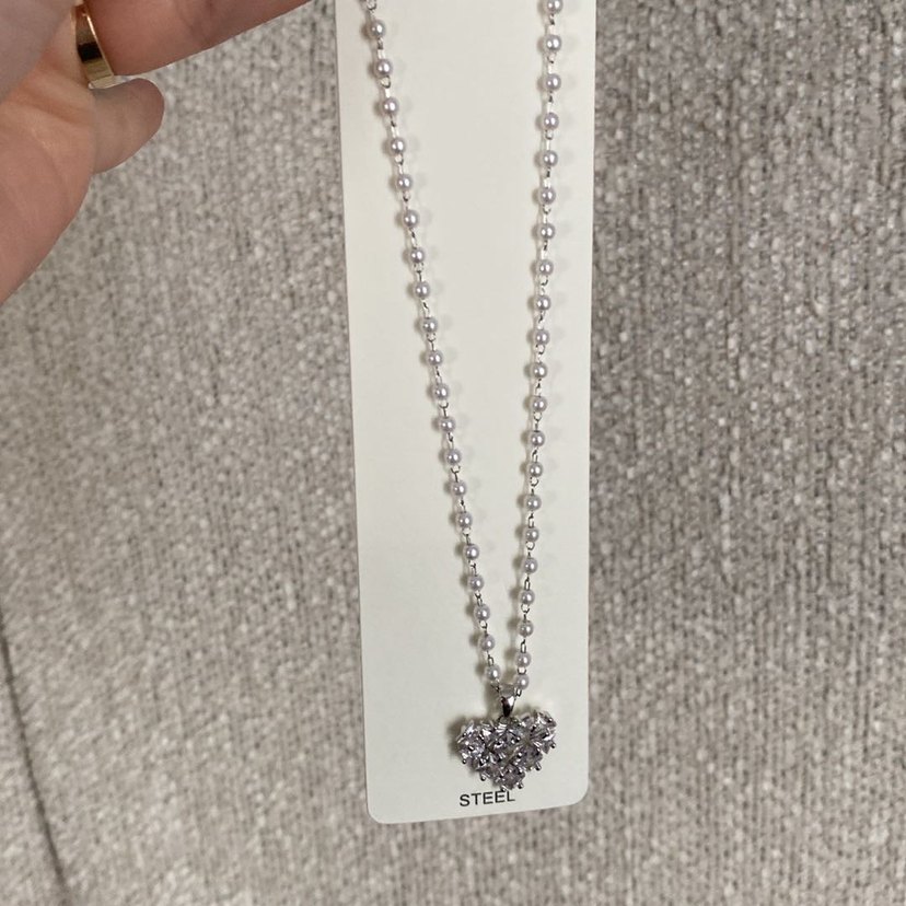 Bu kadın kolyesi, gri ve beyaz tonlarda boncuklu zincir ve kalp şeklinde bir uca sahiptir. Normal midi uzunlukta, minimal ve desensiz tasarıma sahiptir. ❤️