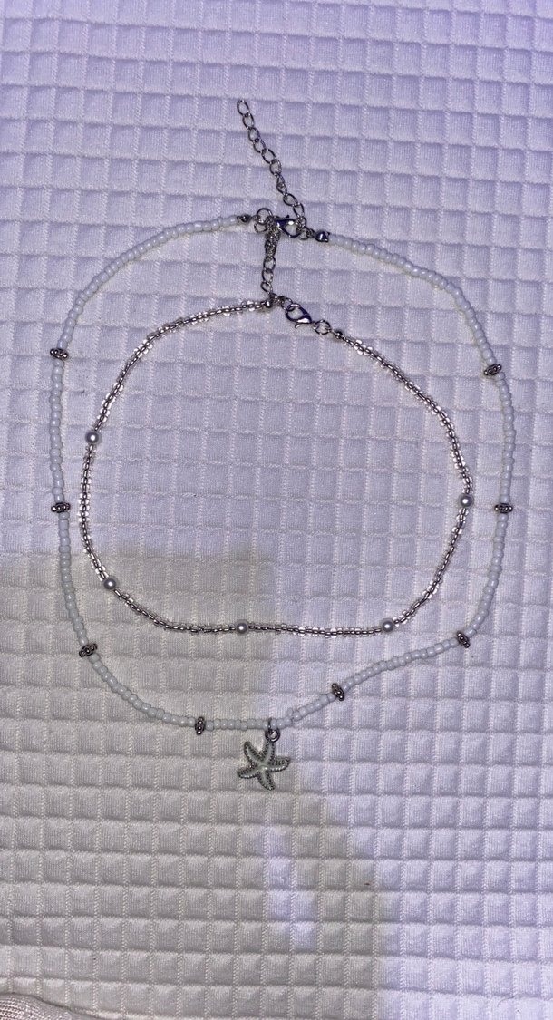 Kısa boy gri boncuklu, minimalist bohem tarzda kadın kolyesi, yıldız şeklinde bir kolye ucu ile. Günlük kullanıma uygundur.