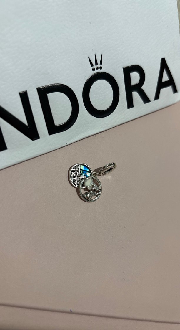 Gri boncuklu ve baskılı detaylı charm, çağdaş Parisian tarzını yansıtıyor. Romantik akşamlar için uygun. Üzerinde 'NDORA' yazısı bulunur.