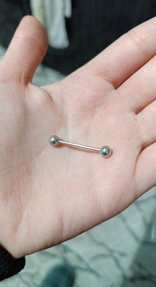 Gri boncuk uçlu, sade ve minimalist rock punk tarzı kadın piercingi. Bej tonlarında basit tasarım. ⚡