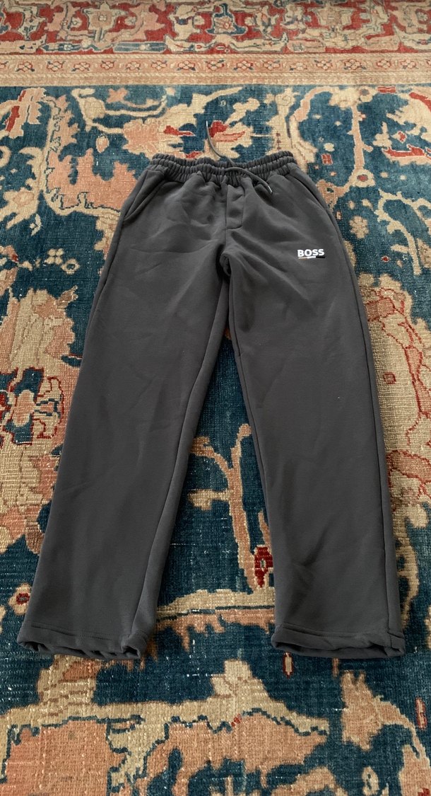 Gri BOSS eşofman altı, rahat kesim ve ceplerle. Yumuşak ve sıcak kumaştan, spor ve günlük kullanım için uygundur.şardonlu kalın defoludur son resimde ekledim defosu ufak bir delik var kumaşta kenarda